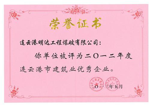 2012年度連云港市建筑業(yè)優(yōu)秀企業(yè)